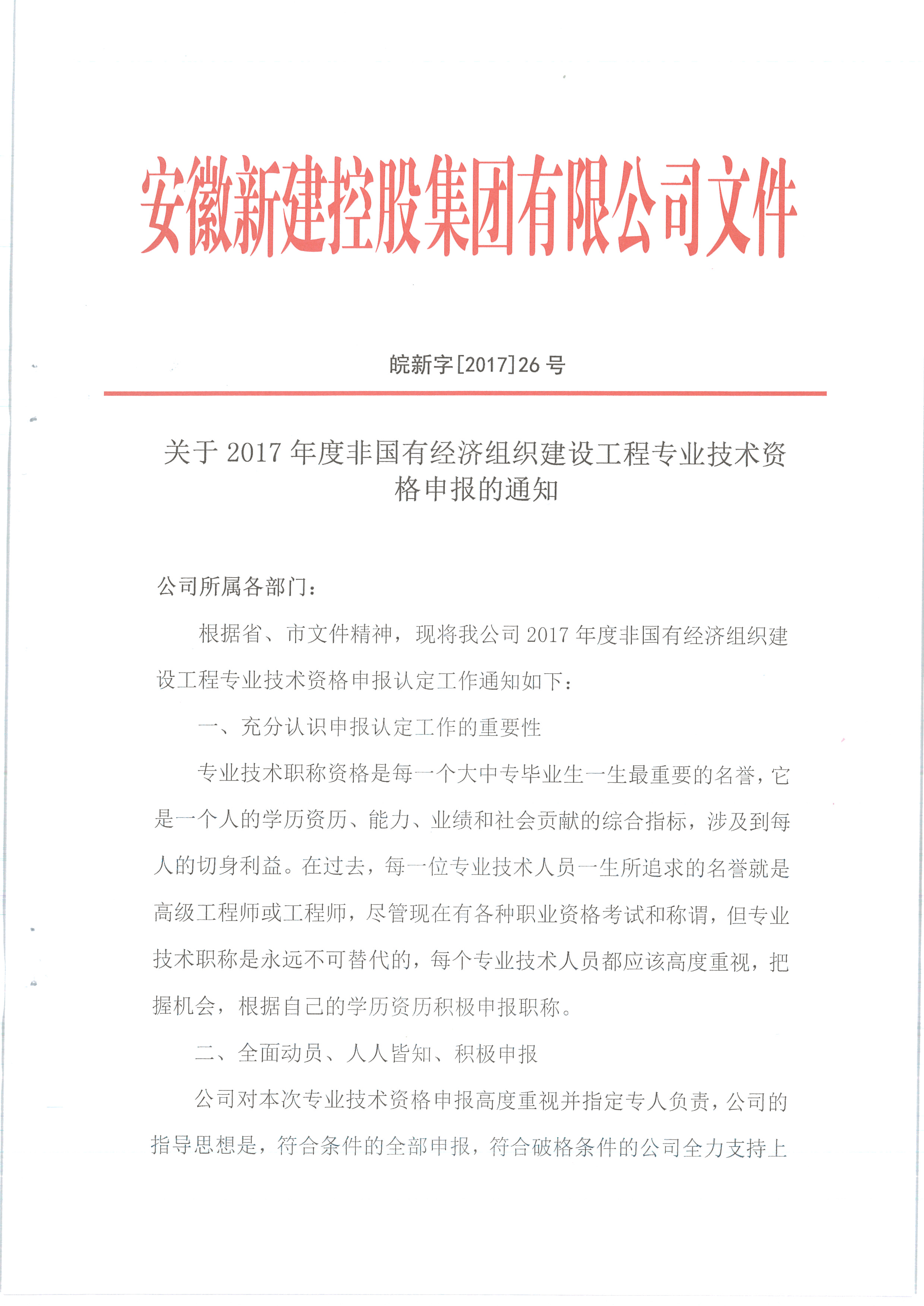 關(guān)于2017年度非國(guó)有經(jīng)濟(jì)組織建設(shè)工程專(zhuān)業(yè)技術(shù)資格申報(bào)的通知
