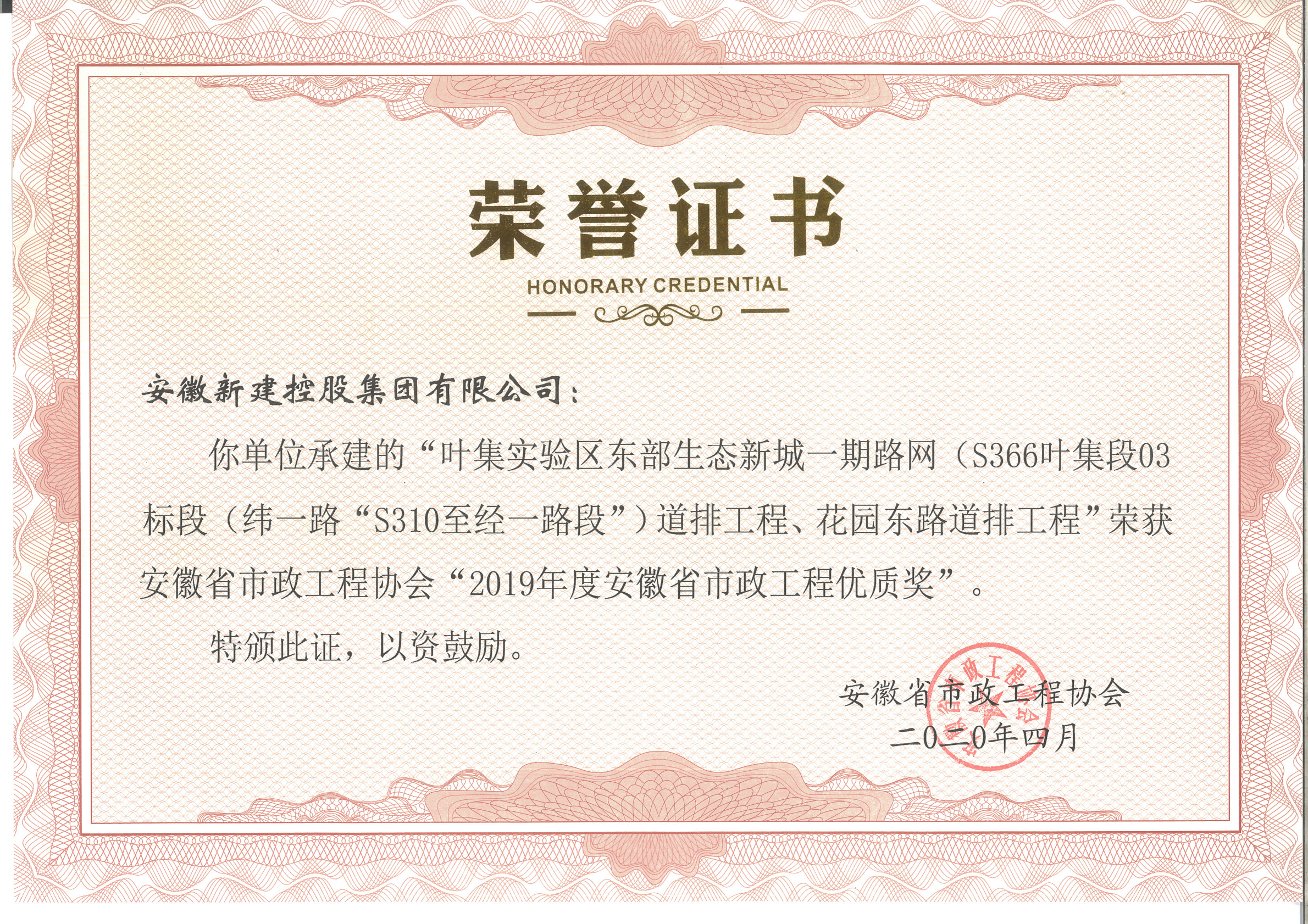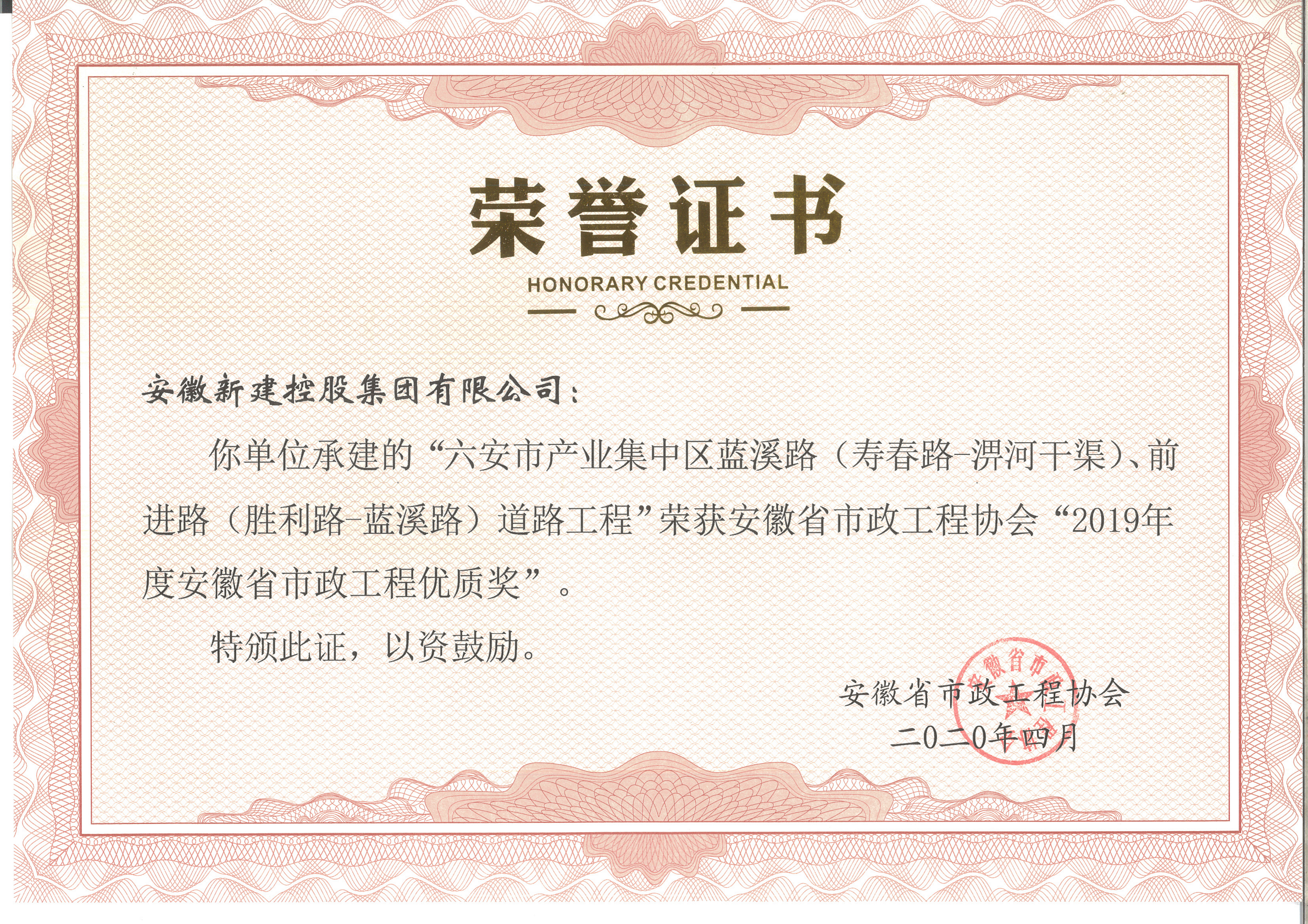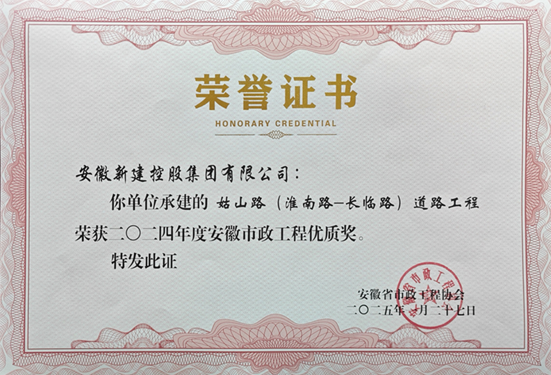 安徽省市政工程優(yōu)質(zhì)獎
