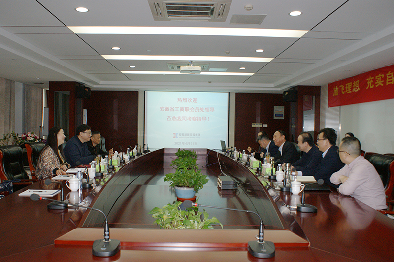 2021年4月21日上午,安徽省工商聯(lián)會員處副處長張旭來我集團公司調(diào)研指導工作,安徽省城市基礎(chǔ)設(shè)施投資商會副會長兼秘書長謝宏明、商會執(zhí)行秘書長陳志武同行。