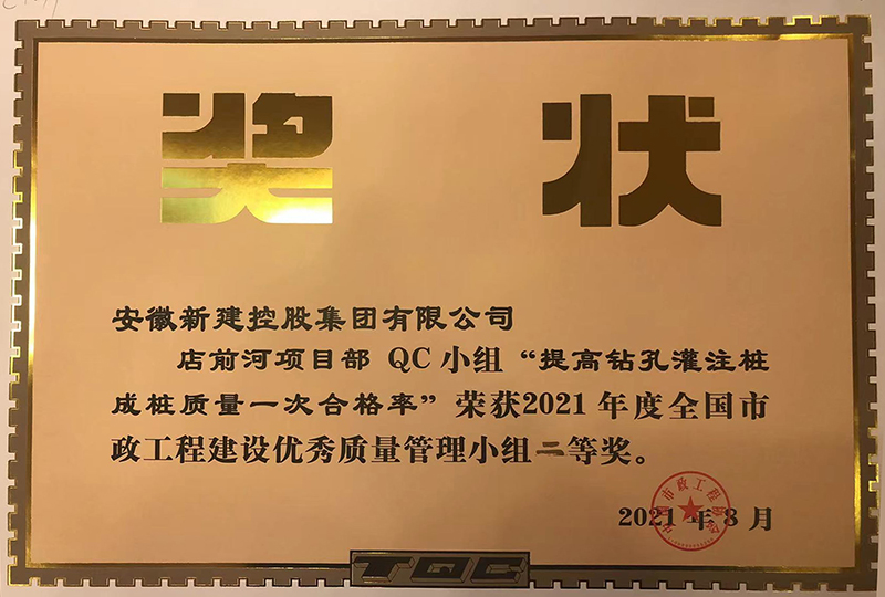 11月3日,由中國市政工程協(xié)會(huì)主辦的2021年度全國市政工程建設(shè)優(yōu)秀QC小組成果交流會(huì)在廣州舉行。集團(tuán)店前河項(xiàng)目部QC小組參賽的優(yōu)秀成果《提高鉆孔灌注樁成樁質(zhì)量一次合格率》榮獲2021年度全國市政工程建設(shè)優(yōu)秀質(zhì)量小組二等獎(jiǎng),標(biāo)志著集團(tuán)公司在全國QC活動(dòng)評比又上一個(gè)臺(tái)階。