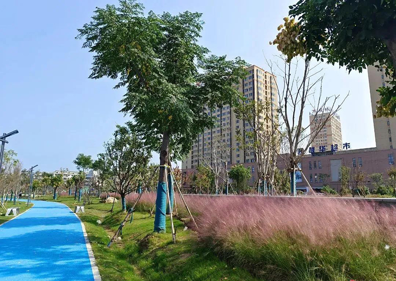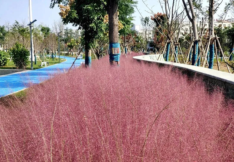 道路旁種下了一小片粉黛亂子草