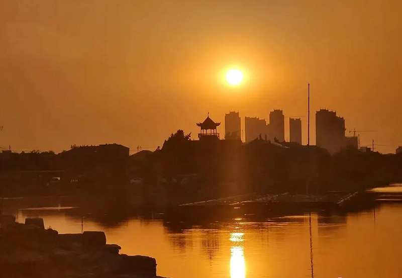 夕陽(yáng)西下,余暉染黃了水面