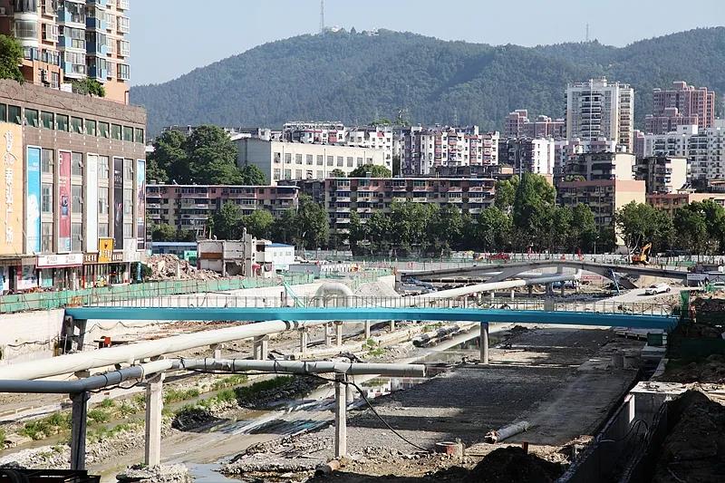 十堰市百二河生態(tài)修復(fù)工程分為“十堰春耕”、“風(fēng)華老街”、“上善若水”、“福壽康寧”、“東風(fēng)浩蕩”、“萬涓歸流”六個(gè)片區(qū)。集團(tuán)公司承建的施工二標(biāo)段位于“上善若水”、“福壽康寧”片區(qū),全長(zhǎng)約3.5公里。主要施工內(nèi)容為河道兩側(cè)鋼筋混凝土雨水污水排水涵,包括1公里的河道中間子槽、景觀園林綠化,外加岸上熱力管溝及強(qiáng)弱電排管,施工總工期為660日歷天,中標(biāo)總價(jià)2.18億元。