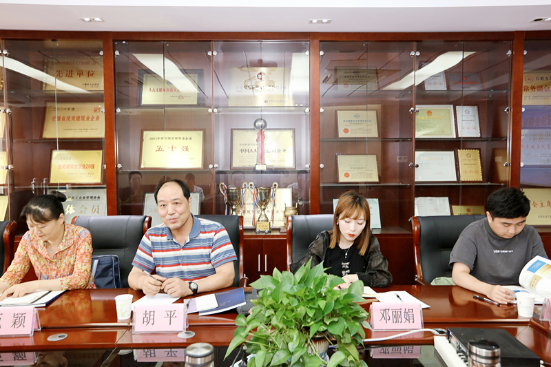 座談會上,總經(jīng)理王鵬程代表公司向協(xié)會領導的到來表示熱烈歡迎,并就公司各項經(jīng)營指標、營收產(chǎn)值、資質(zhì)等級等基本情況作了具體匯報。王總表示,企業(yè)現(xiàn)階段發(fā)展良好,始終堅持自營施工,具有很強的綜合施工能力,二十多年來,承建了大批政府重點工程。發(fā)展壯大中,始終堅持“做強企業(yè)、致富員工、服務社會”的企業(yè)宗旨,鼓勵員工參與公司項目建設,并連續(xù)多年入選“安徽省民營企業(yè)百強”、“合肥市建筑業(yè)20強榜單”。