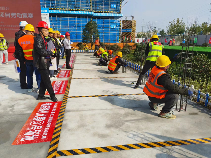 本次勞動競賽由包河區(qū)總工會、包河經(jīng)濟開發(fā)區(qū)管委會、包河區(qū)住建局主辦,活動地點設在滬上人家二期項目工地,參賽人員主要有中建五局二公司、上海建工一建集團、安徽國信建設集團、安徽新建控股集團、安徽昌達路橋公司等建筑施工企業(yè)共計約40人。