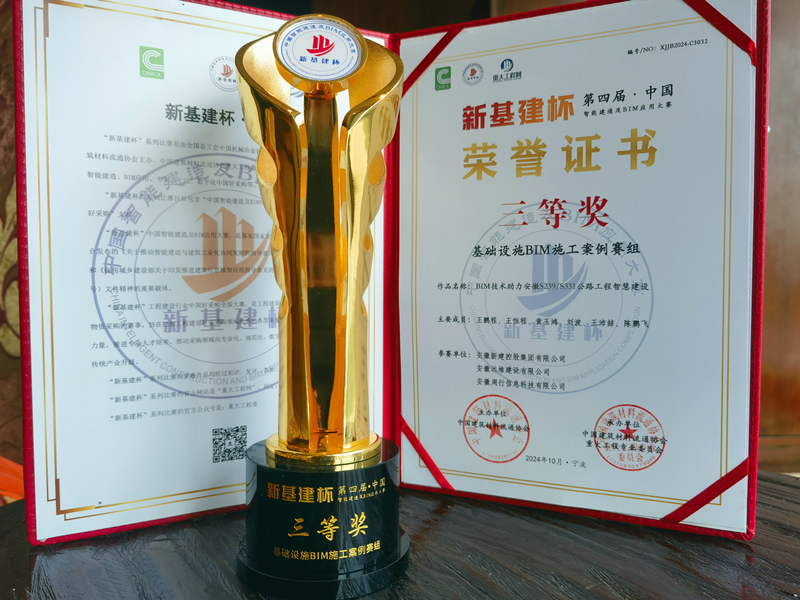 10月21日,由中國(guó)建筑材料流通協(xié)會(huì)主辦的第三屆中國(guó)重大工程數(shù)字生態(tài)大會(huì)暨第四屆“新基建杯”BIM應(yīng)用大賽優(yōu)秀成果交流會(huì)在寧波召開(kāi),集團(tuán)公司申報(bào)的《BIM技術(shù)助力安徽S239/S331公路工程智慧建設(shè)》榮獲大賽基礎(chǔ)設(shè)施BIM施工案例組三等獎(jiǎng)。