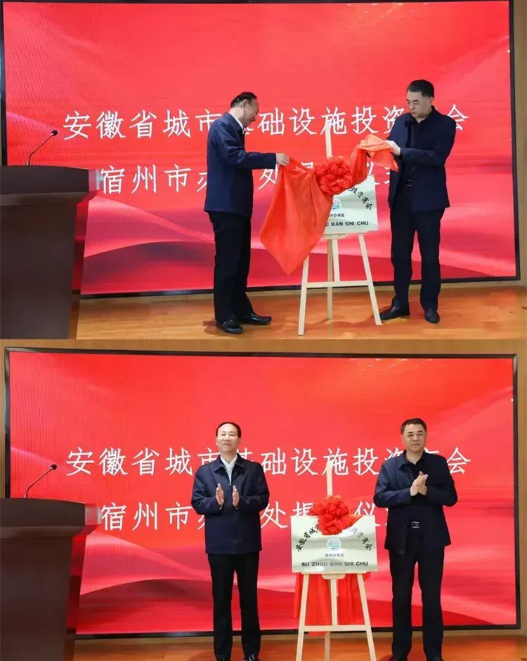 安徽省城市基礎設施投資商會會長、安徽新建控股集團有限公司董事長王杰英向新任宿州市辦事處主任臧宇授牌。