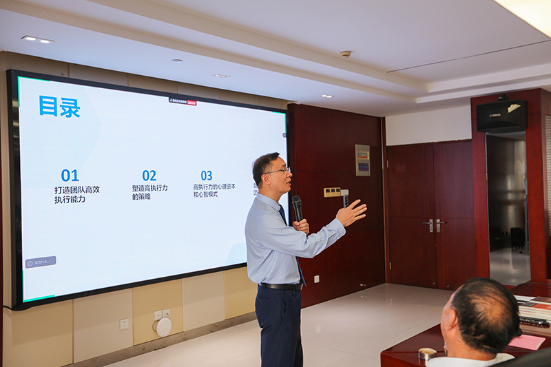 集團(tuán)公司董事長在開班儀式上做動(dòng)員講話,他指出培訓(xùn)的目的在于解決管理痛點(diǎn)、突破轉(zhuǎn)型瓶頸、提升干部素質(zhì)。參加學(xué)習(xí)的每一位同志都要清晰認(rèn)識(shí)到在執(zhí)行力上的差距,掌握科學(xué)的方法,形成研究課題,以提高執(zhí)行力推動(dòng)公司的整體效益和發(fā)展。更要帶著問題學(xué),帶著任務(wù)學(xué),帶著情感干。執(zhí)行力是企業(yè)的生命力!集團(tuán)公司所承建的每一棟房子承載著老百姓的期待,所施工的每一條道路關(guān)乎經(jīng)濟(jì)命脈,所建設(shè)的每一個(gè)項(xiàng)目都銘刻著公司的信譽(yù)。希望大家以此次培訓(xùn)為起點(diǎn),以更高標(biāo)準(zhǔn)提升執(zhí)行力,推動(dòng)管理升級(jí)、創(chuàng)造更大價(jià)值!