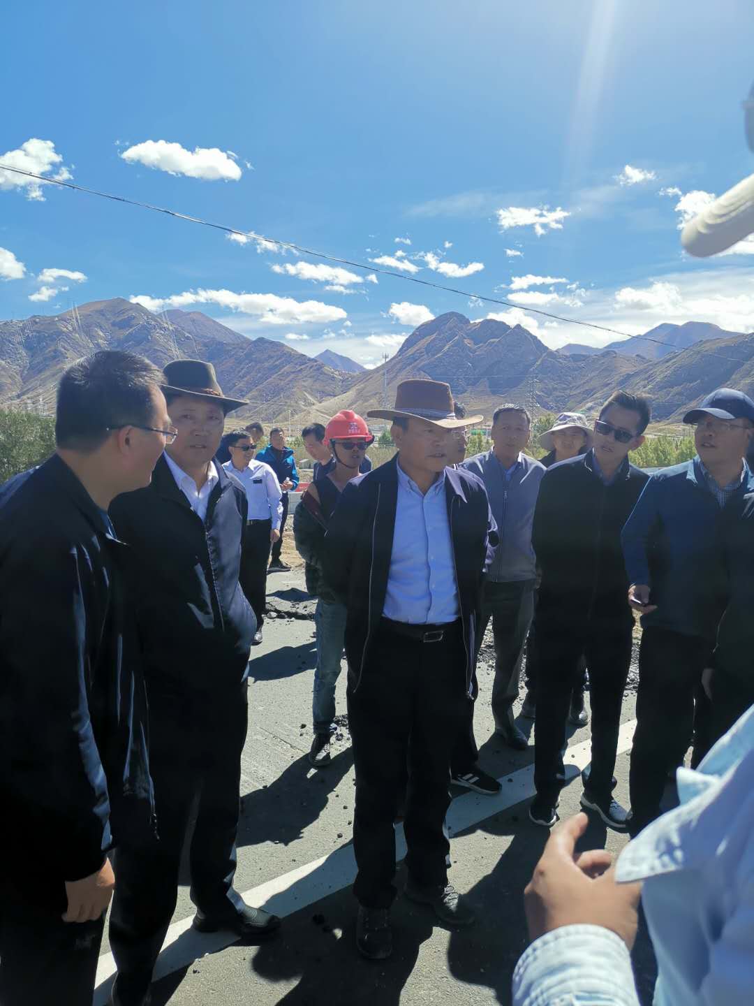 2020年10月8日西藏自治區(qū)黨委常委、拉薩市委書記白瑪旺堆、市長(zhǎng)果果率市建設(shè)局、區(qū)建設(shè)局、區(qū)管委會(huì)等相關(guān)部門領(lǐng)導(dǎo)現(xiàn)場(chǎng)調(diào)研拉薩市柳梧新區(qū)桑達(dá)村凈土產(chǎn)業(yè)園連接線工程施工進(jìn)度和建設(shè)情況。