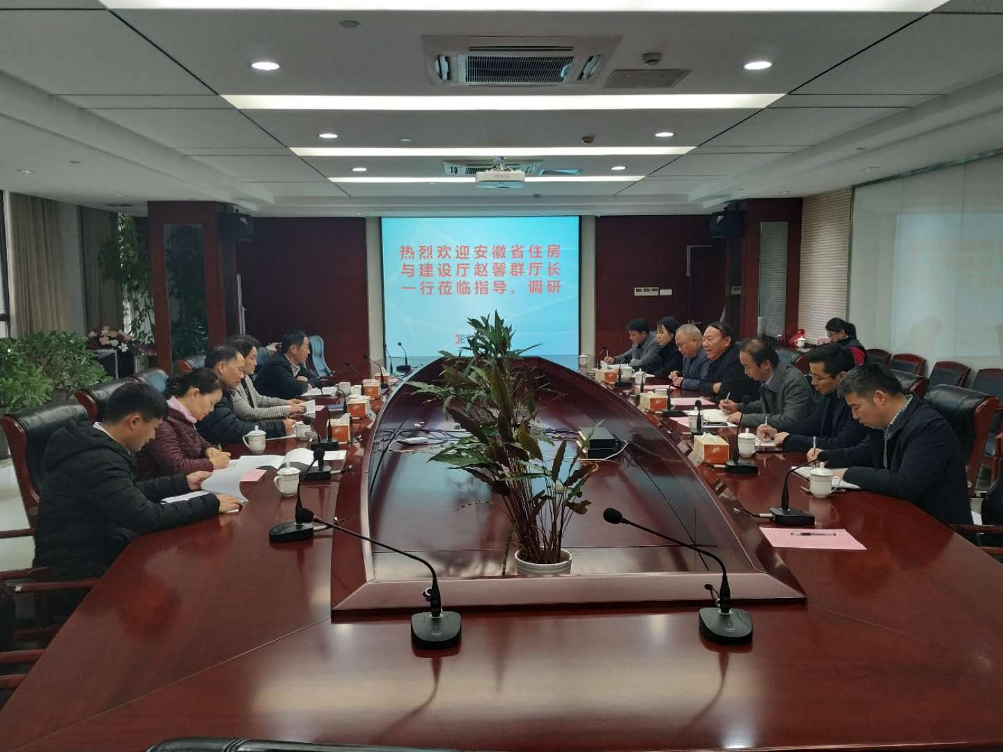 2018年12月26日下午,省住建廳趙馨群廳長一行赴我公司開展“四送一服”進民企活動調(diào)研工作。安徽新建控股集團有限公司董事長王杰英、總經(jīng)理王鵬程等全程陪同。