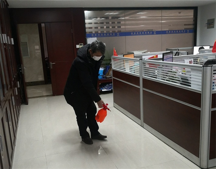 清晨由專業(yè)人員對(duì)公共辦公區(qū)域進(jìn)行消毒殺菌