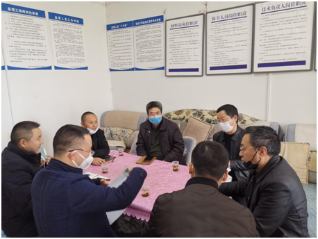 在項目部會議室夏局長等領(lǐng)導(dǎo)對項目部的復(fù)工準備及防疫工作給予肯定,也指出存在的一些不足,并提出了很多中肯的建議。