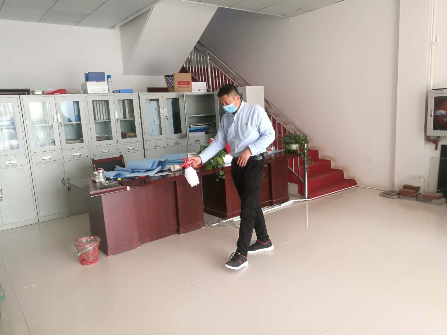 3月11日,我公司全椒縣站前道路及火車站廣場改造工程項目部進行了復工準備工作,在開工前,項目部成立了疫情防控小組,小組成員對項目部所有復工人員春節(jié)期間行程進行了詳細的信息登記,并逐個檢查健康信息,同時為到崗員工發(fā)放口罩、消毒液、噴霧器、洗手液、一次性手套等物資,做好一天兩次的體溫檢測,定時對辦公區(qū)、廁所、及辦公設備進行消毒。