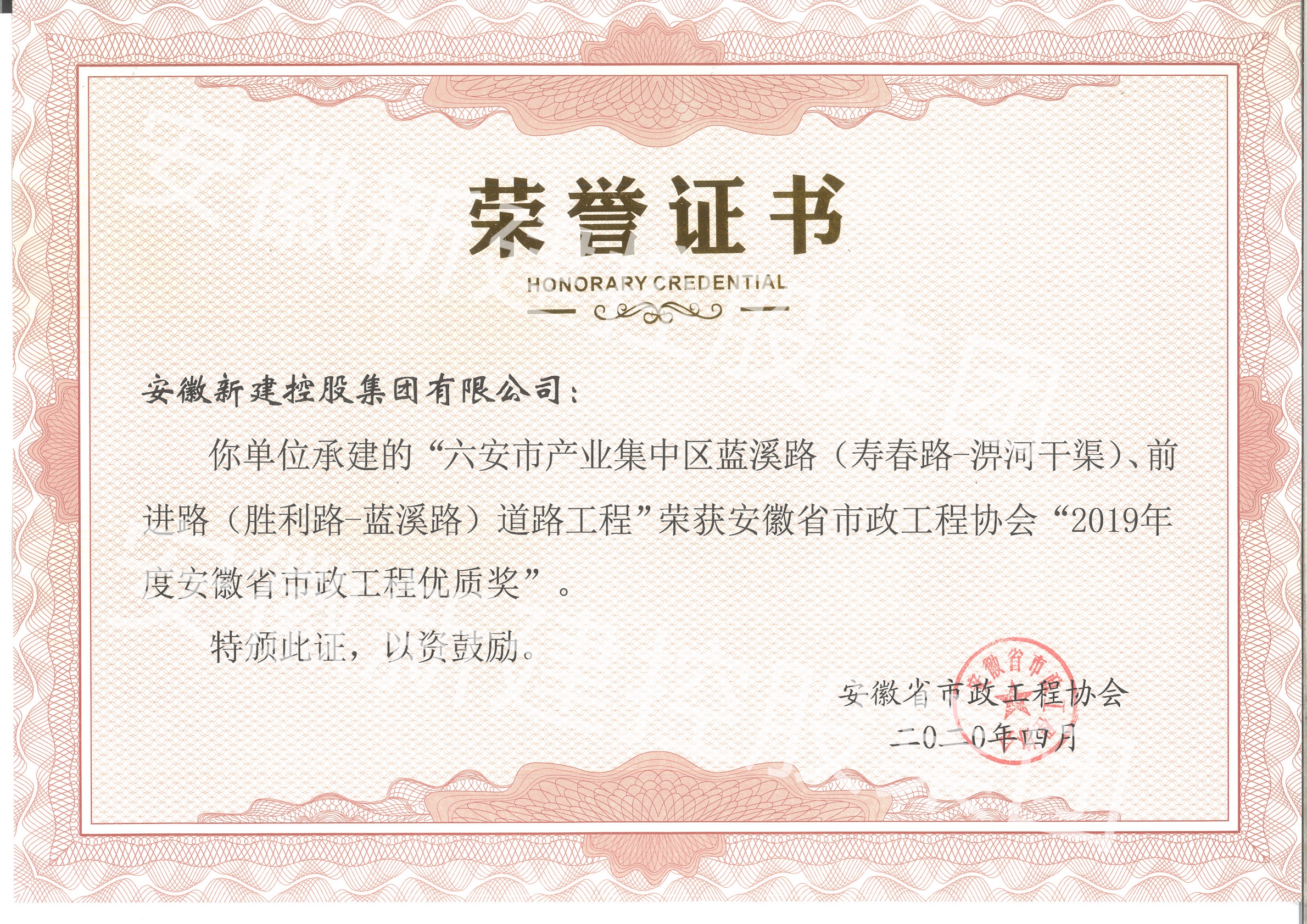 近日,從安徽省市政工程協(xié)會傳來喜訊,由我單位承建的“葉集區(qū)城區(qū)道路改造工程”、“六安市產(chǎn)業(yè)集中區(qū)藍溪路、前進路道路工程”、“鳳陽寧國現(xiàn)代產(chǎn)業(yè)園文賢北路、鳳祥路等三條道路工程”、“葉集實驗區(qū)東部生態(tài)新城一期路網(wǎng)標(biāo)段道排工程、花園東路道排工程”等四項工程榮獲“2019年度安徽省市政工程優(yōu)質(zhì)獎”。