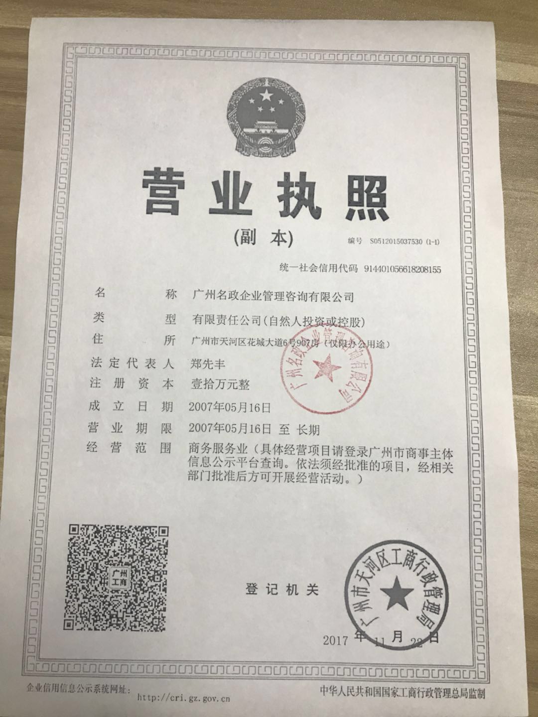 天河區(qū)珠江新城花城大道6號名門大廈907