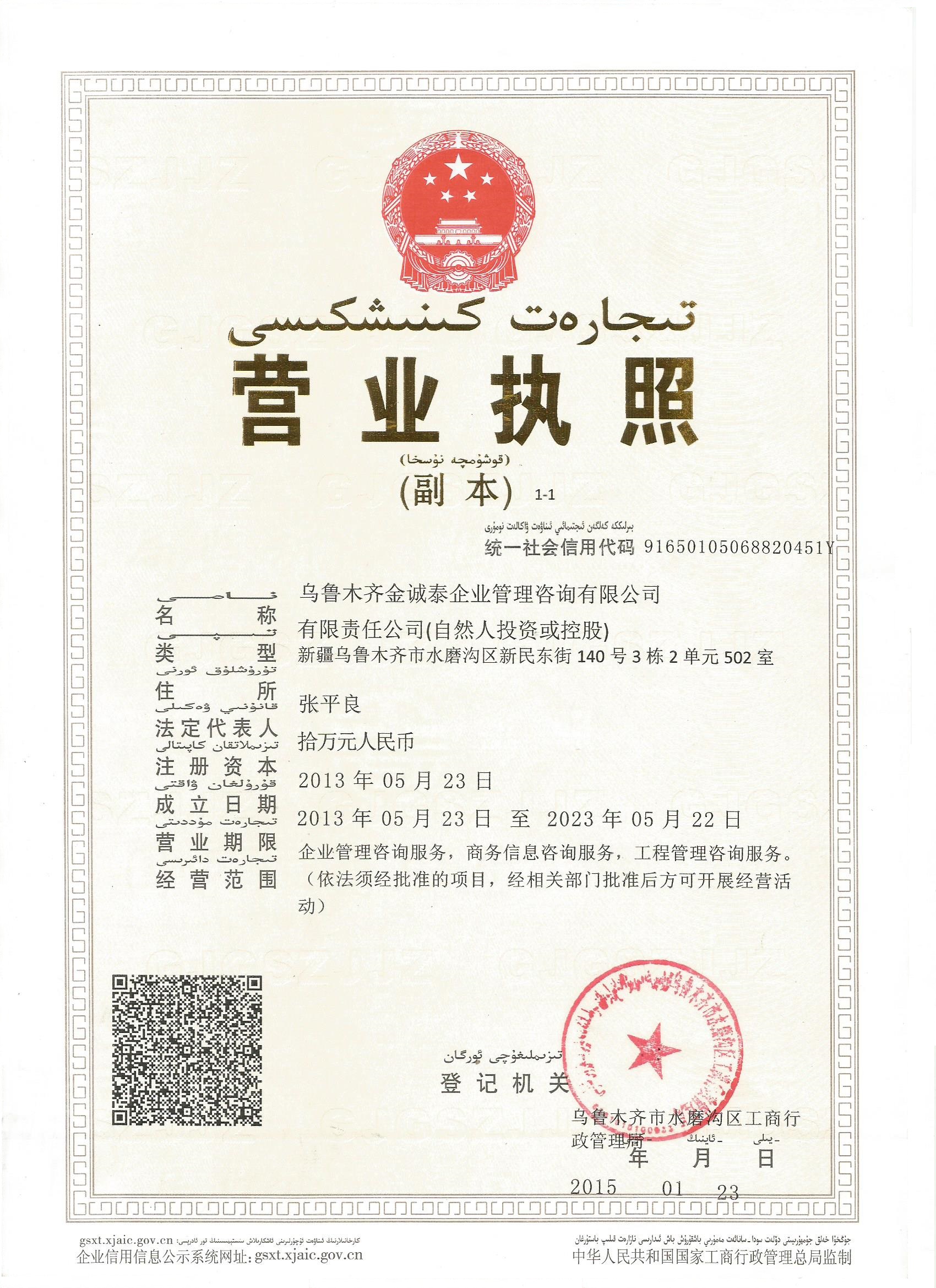 烏魯木齊金誠泰企業(yè)咨詢服務(wù)有限公司